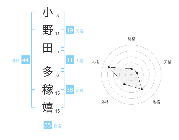 小野田 多稼嬉さんを姓名の画数から五運を鑑定
