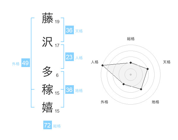 藤沢 多稼嬉さんの総格は72画の2点