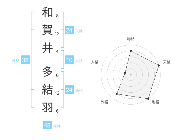 和賀井 多結羽さんの地格は24画の5点!