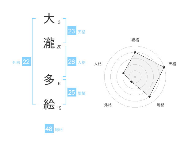 大瀧 多絵さんを姓名の画数から五運を鑑定
