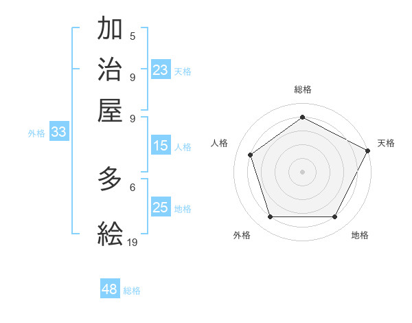 加治屋 多絵さんを姓名の画数から五運を鑑定