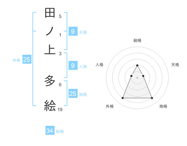 田ノ上 多絵さんを姓名の画数から五運を鑑定