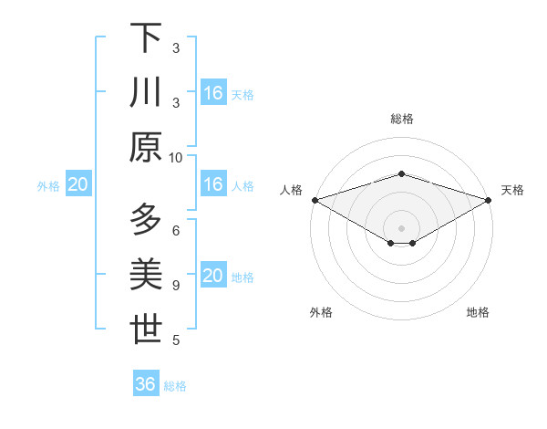 下川原 多美世さんの人格は16画の5点!