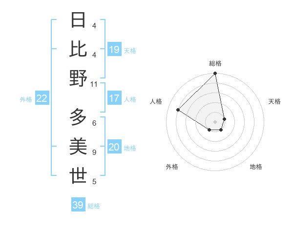 日比野 多美世さんを姓名の画数から五運を鑑定