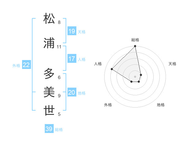 松浦 多美世さんを姓名の画数から五運を鑑定