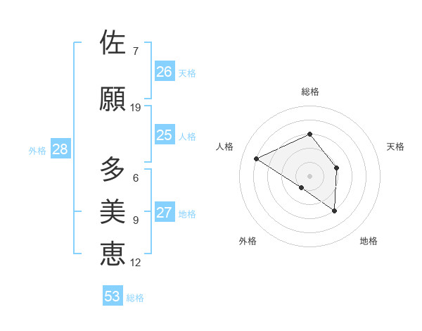 佐願 多美恵さんを姓名の画数から五運を鑑定