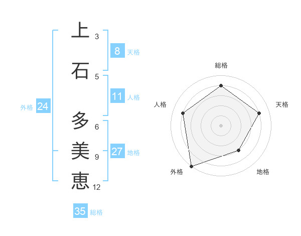 上石 多美恵さんを姓名の画数から五運を鑑定