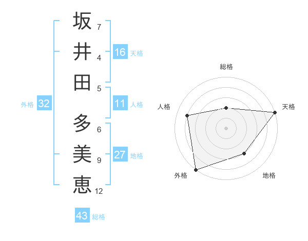 坂井田 多美恵さんの総格は43画の2点!
