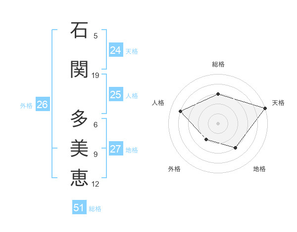 石関 多美恵さんの総格は51画の3点!