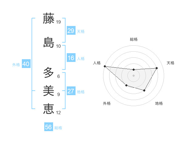 藤島 多美恵さんを姓名の画数から五運を鑑定