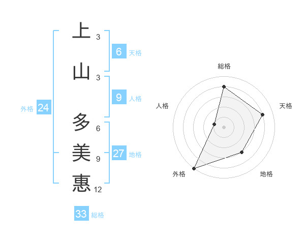 上山 多美惠さんを姓名の画数から五運を鑑定