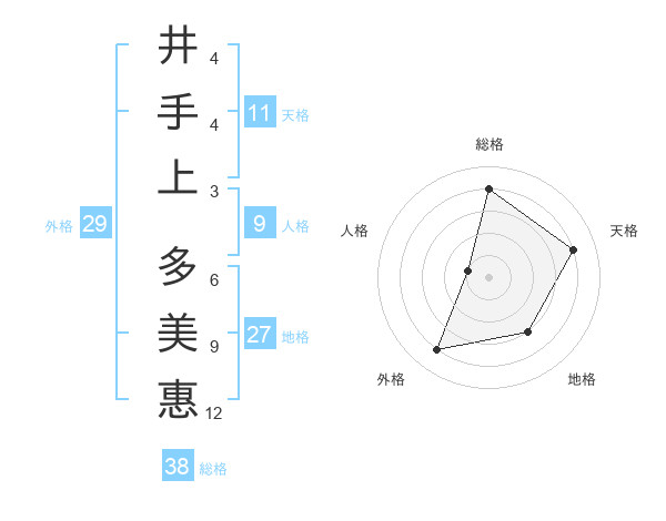 井手上 多美惠さんを姓名の画数から五運を鑑定