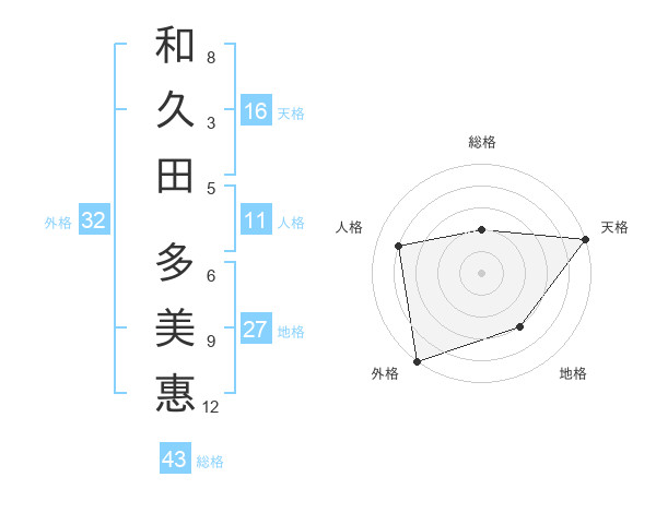 和久田 多美惠さんの天格は16画の5点