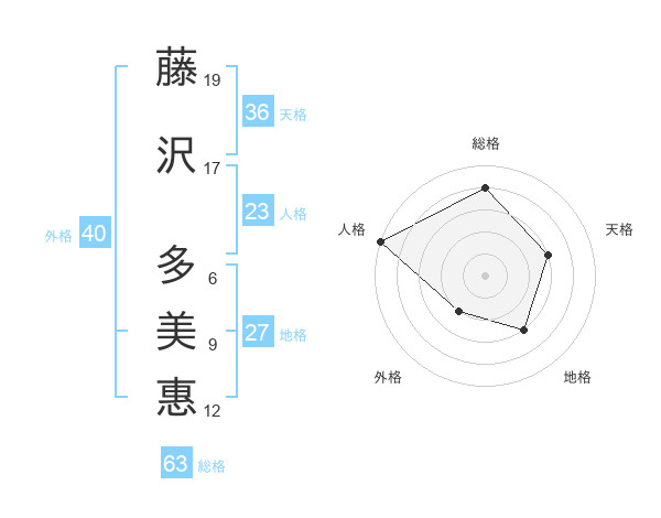 藤沢 多美惠さんの地格は27画の3点!