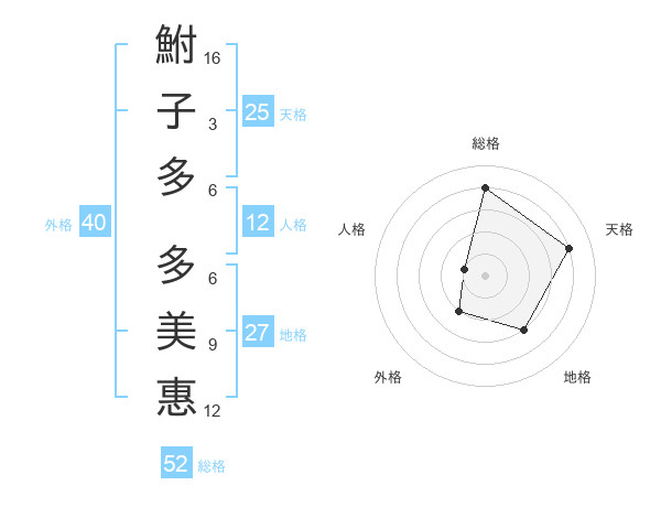 鮒子多 多美惠さんを姓名の画数から五運を鑑定