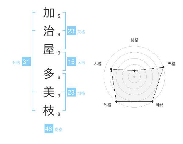 加治屋 多美枝さんを姓名の画数から五運を鑑定