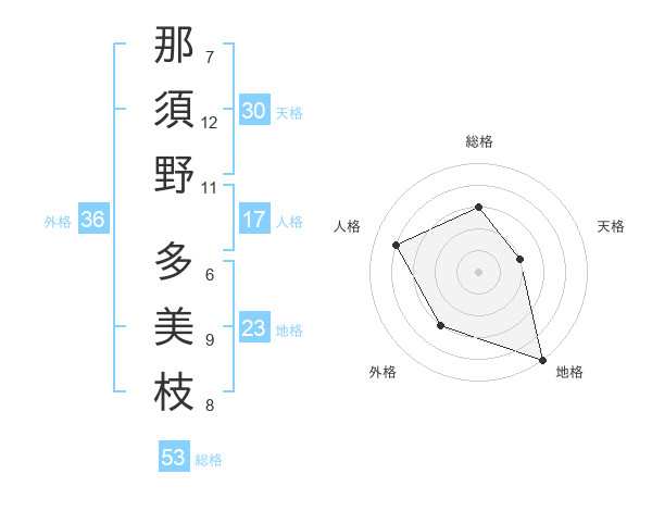 那須野 多美枝さんを姓名の画数から五運を鑑定