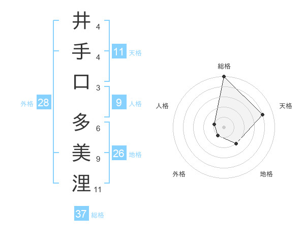 井手口 多美浬さんを姓名の画数から五運を鑑定