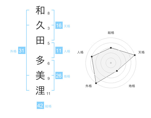 和久田 多美浬さんを姓名の画数から五運を鑑定