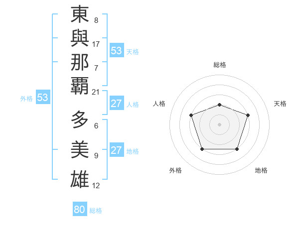 東與那覇 多美雄さんを姓名の画数から五運を鑑定