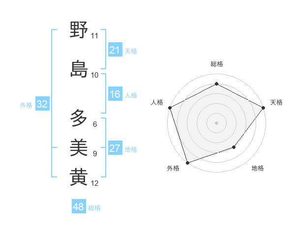 野島 多美黄さんの総格は48画の4点!