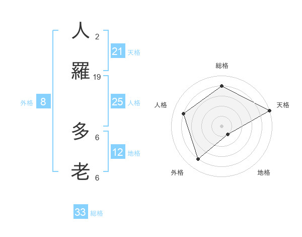 人羅 多老さんの天格は21画の5点!