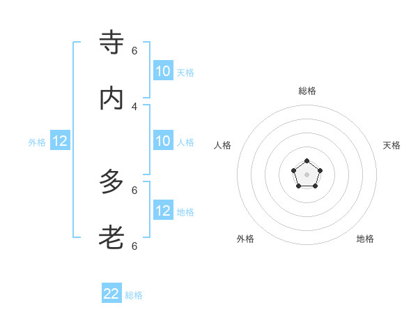 寺内 多老さんの総格は22画の1点!