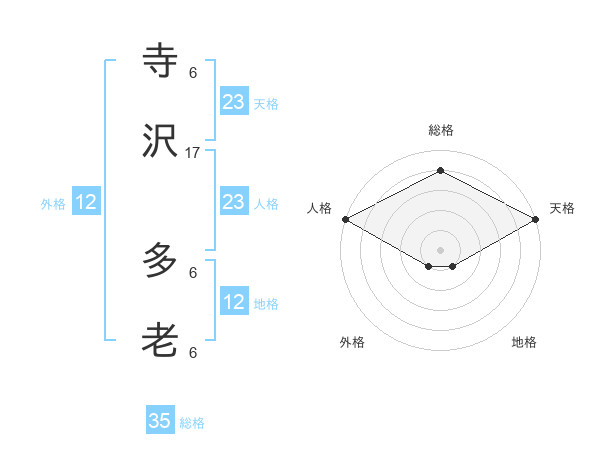 寺沢 多老さんを姓名の画数から五運を鑑定