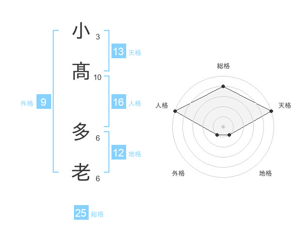 小髙 多老さんの天格は13画の5点!