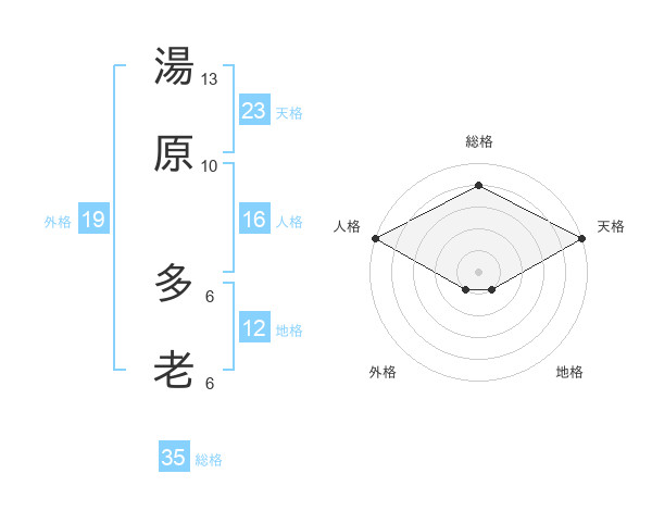 湯原 多老さんの総格は35画の4点!