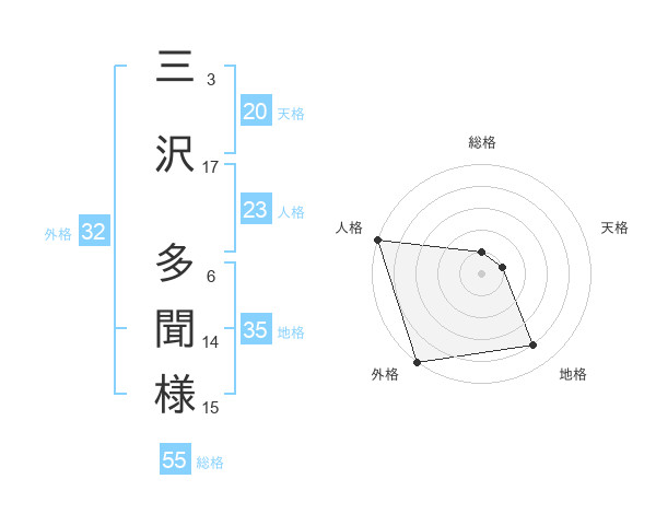 三沢 多聞様さんを姓名の画数から五運を鑑定