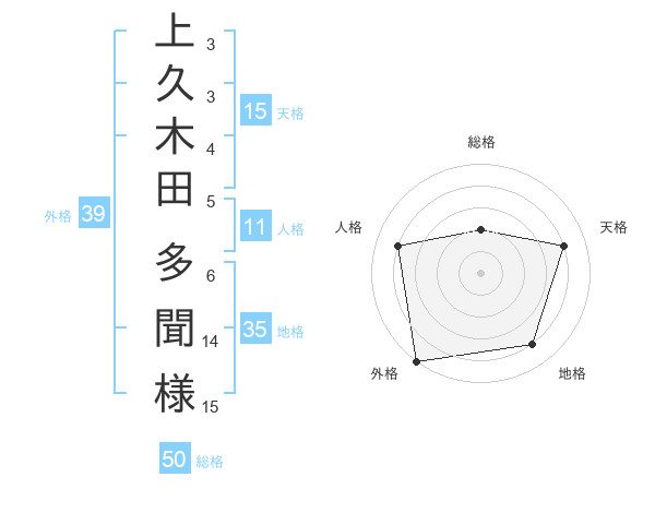 上久木田 多聞様さんを姓名の画数から五運を鑑定