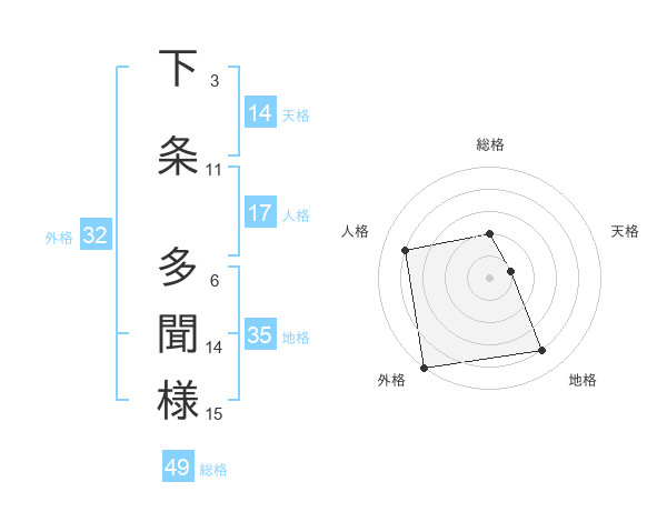 下条 多聞様さんの総格は49画の2点!