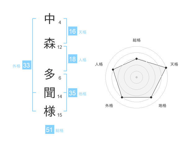 中森 多聞様さんを姓名の画数から五運を鑑定
