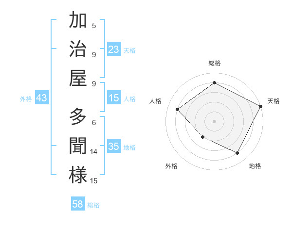 加治屋 多聞様さんの天格は23画の5点