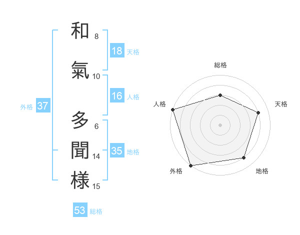 和氣 多聞様さんを姓名の画数から五運を鑑定