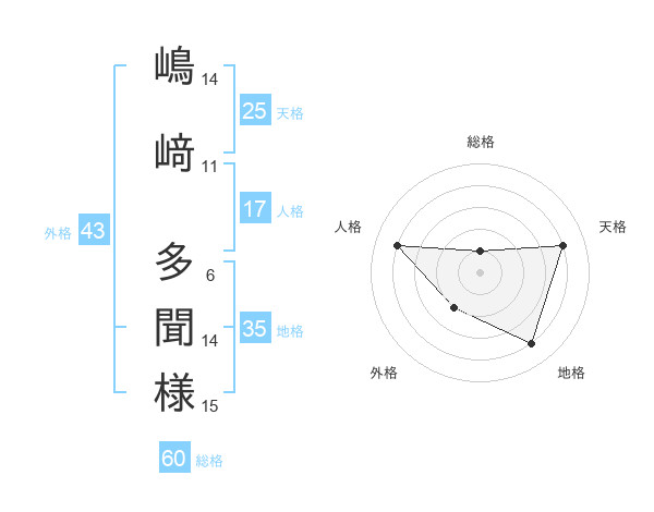 嶋﨑 多聞様さんを姓名の画数から五運を鑑定