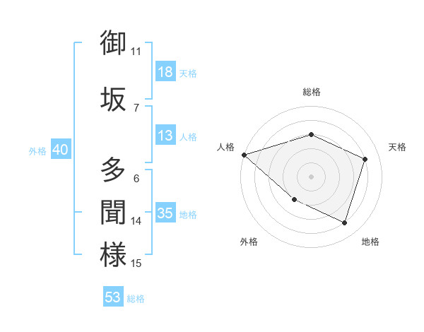 御坂 多聞様さんを姓名の画数から五運を鑑定