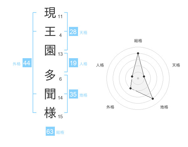 現王園 多聞様さんを姓名の画数から五運を鑑定