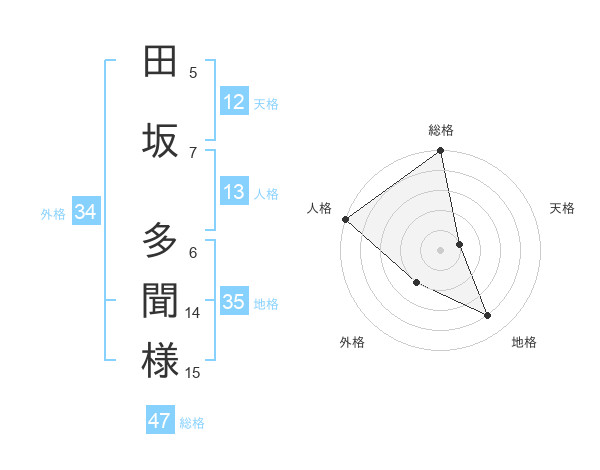 田坂 多聞様さんの総格は47画の5点!