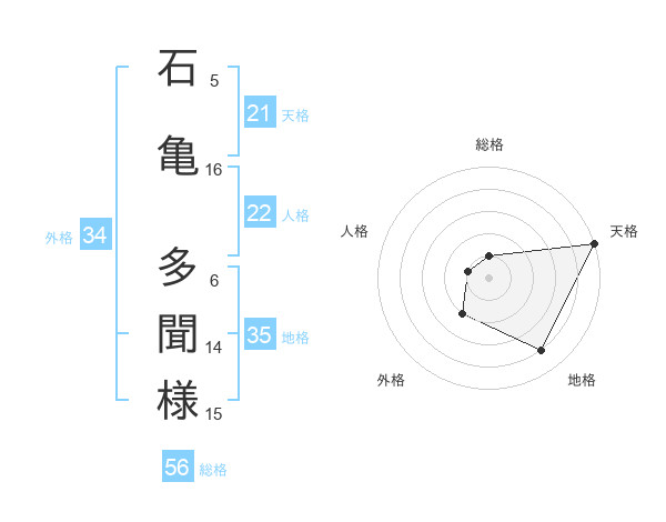 石亀 多聞様さんの天格は21画の5点!