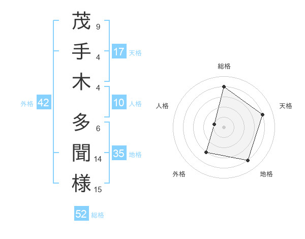 茂手木 多聞様さんの総格は52画の4点