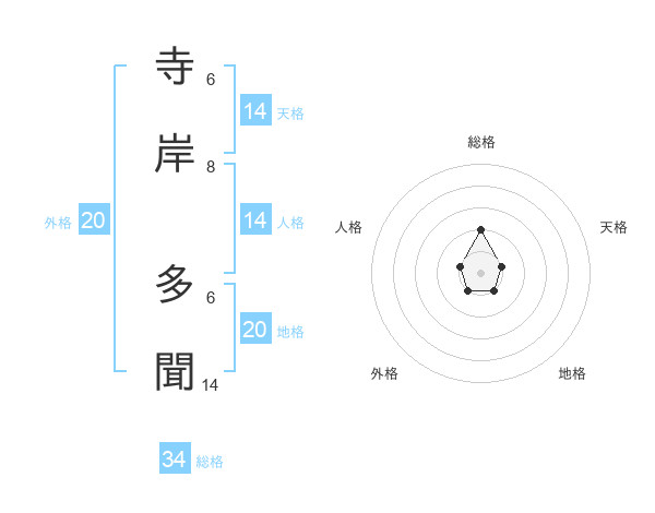 寺岸 多聞さんを姓名の画数から五運を鑑定