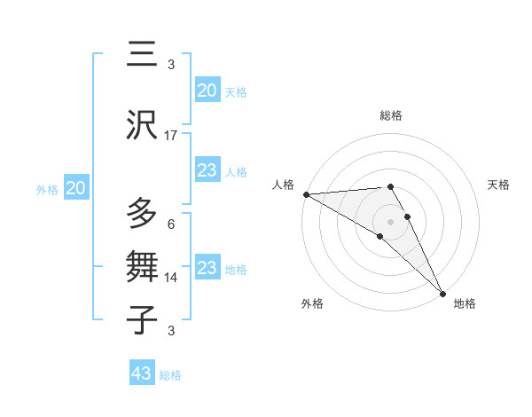 三沢 多舞子さんの総格は43画の2点!