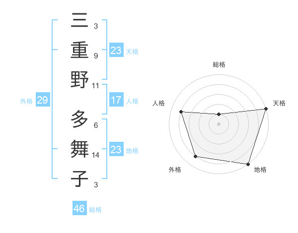 三重野 多舞子さんの天格は23画の5点!
