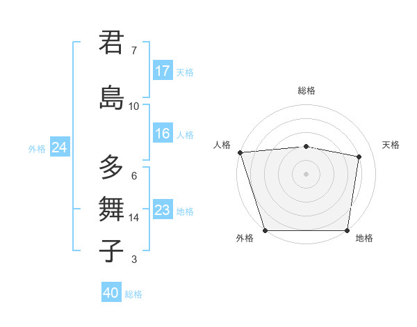 君島 多舞子さんを姓名の画数から五運を鑑定