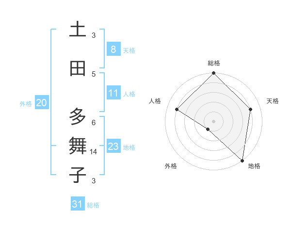 土田 多舞子さんの総格は31画の5点!
