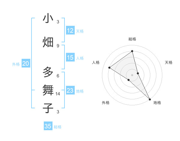 小畑 多舞子さんの天格は12画の1点!