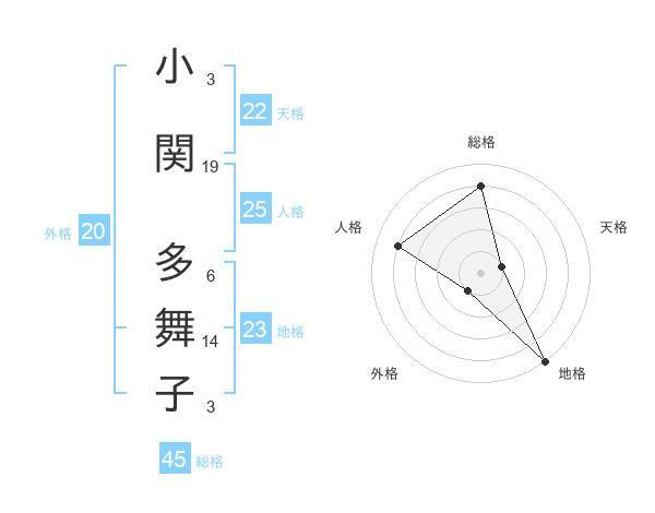 小関 多舞子さんを姓名の画数から五運を鑑定