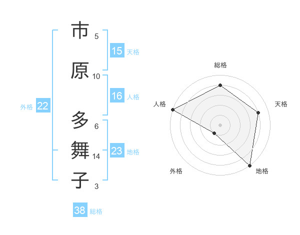 市原 多舞子さんの総格は38画の4点!